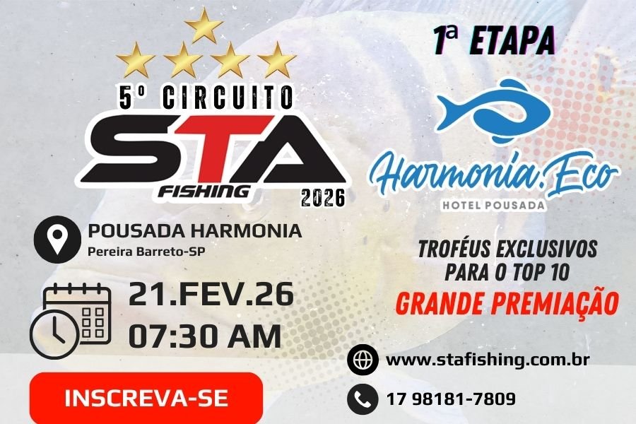 - e) A taxa de inscrição poderá variar de acordo com cada etapa, os valores serão divulgados através das mídias do STA FISHING (site stafishing.com.br, grupo de WhatsApp e Instagram), até 20 dias antes de cada etapa;