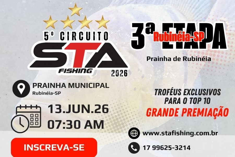 Serão realizadas, durante o ano de 2026, 06 (seis) etapas independentes, que comtemplarão o circuito STA FISHING. Sendo realizadas nas seguintes datas predefinidas: